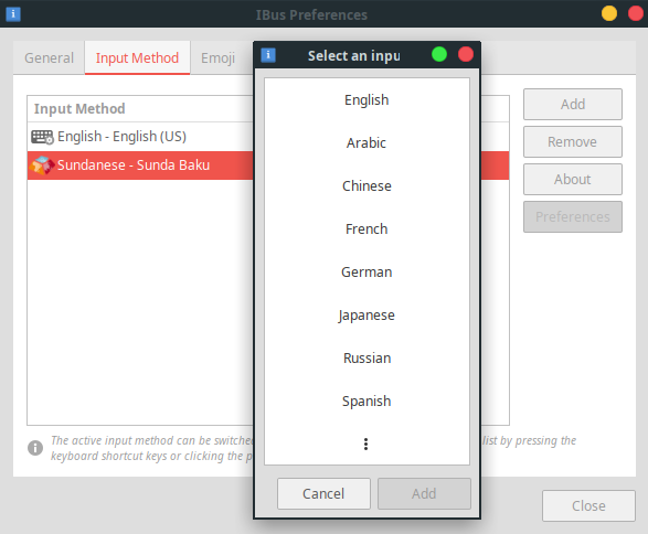 Setelah keboard terinstal pada Keyman, berikutnya adalah mengatur peferensi IBus. Aplikasi ini berguna untuk memanggil data dari Keyman. Ingat, kita tadi sudah memasang keyboard Sunda Baku. Kita akan memanggil data keyboard Sunda Baku agar bisa digunakan oleh iBus.